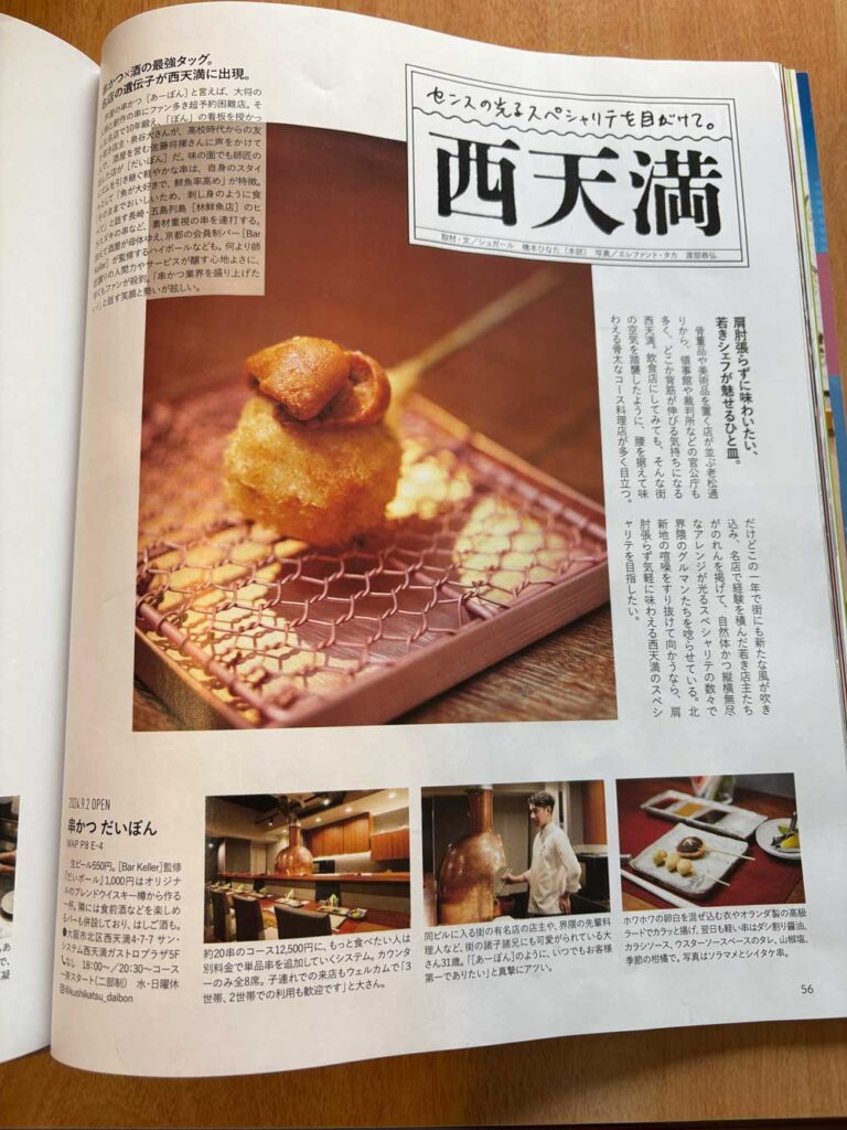 弊社が銅カバーを企画・ご提案させていただき加工・製造を全て手作りで行い、納品させていただきました串かつ「だいぼん」さんが雑誌Meetsに掲載されていましたので、ご紹介します。